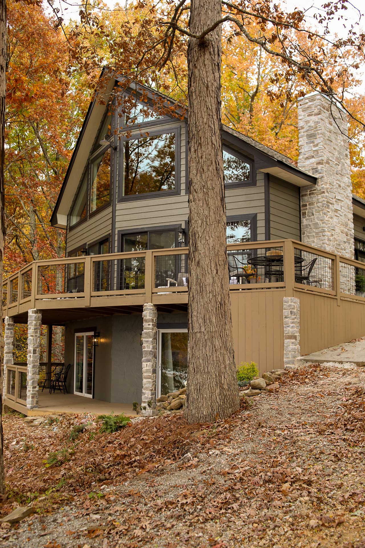 Get ready to be spoiled by Tennessee charm in this stunning lakefront home with a 4-mile view of the lake! Boasting fantastic architecture and a dark exterior that fits the landscape perfectly, even the most design-oriented guests will fall in love with this home-away-from-home.