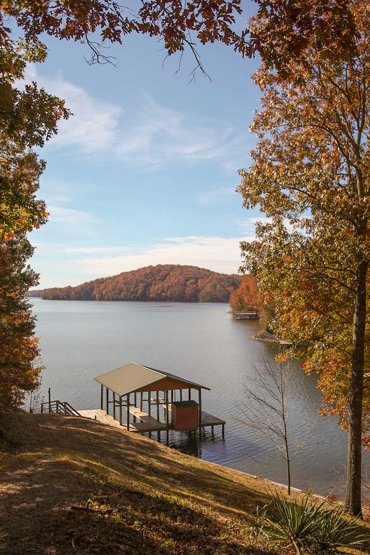 To get to the secluded lake house, you’ll experience a winding drive lined with mature trees that canopy over the road. Once you reach the top of the hill, you will find The Perfect Tenn with ample parking space in the driveway and a level boat parking area.